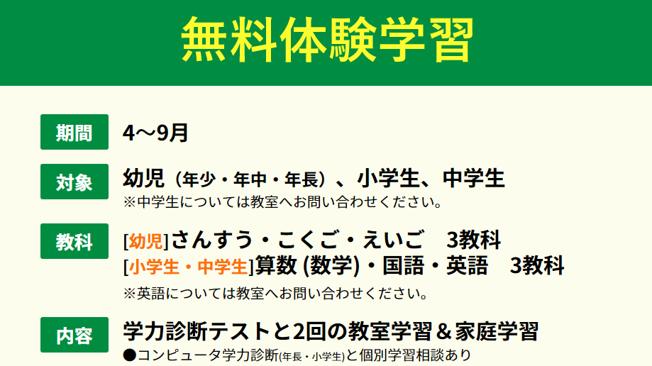 学研中野みいし教室 夏の無料体験学習