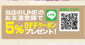 ラインでお友達登録すると5%offクーポンプレゼントします。