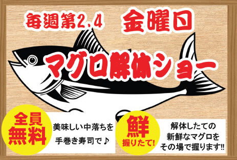 第2,4金曜日はマグロ解体ショー マグロの中落ち全員無料